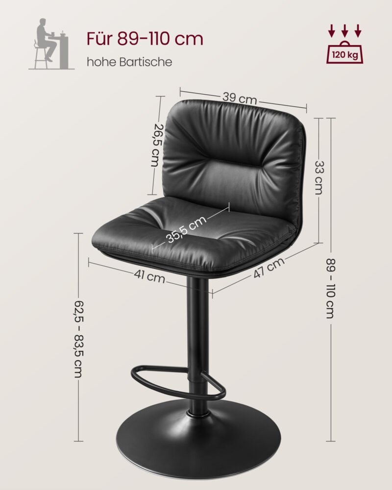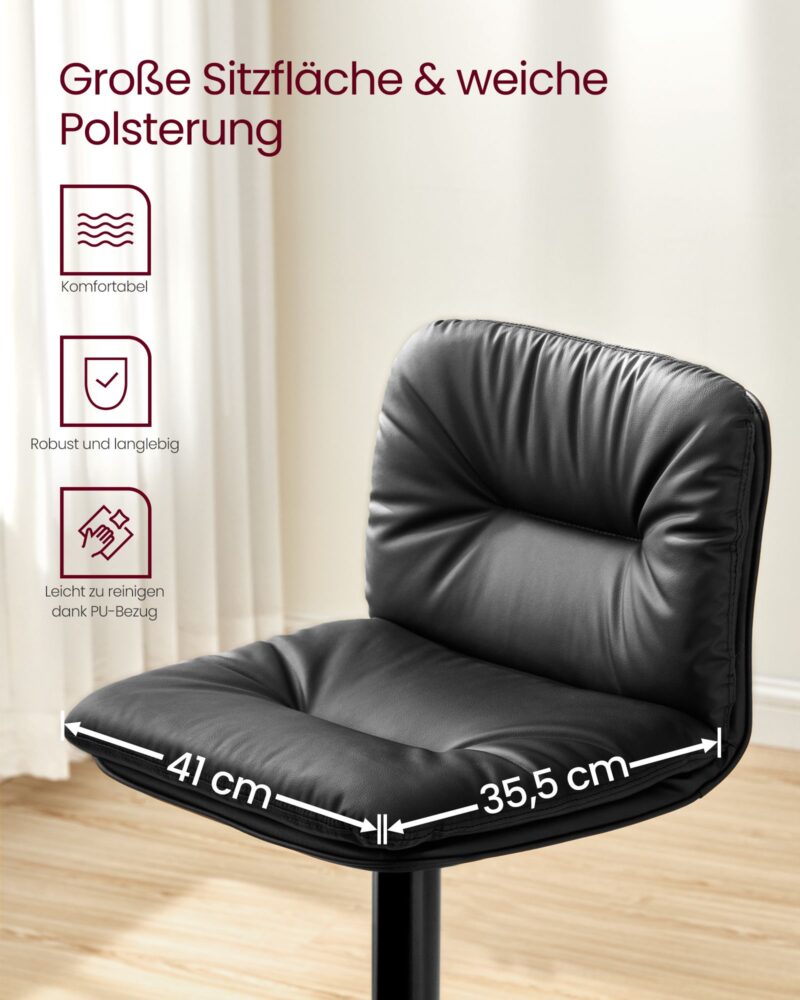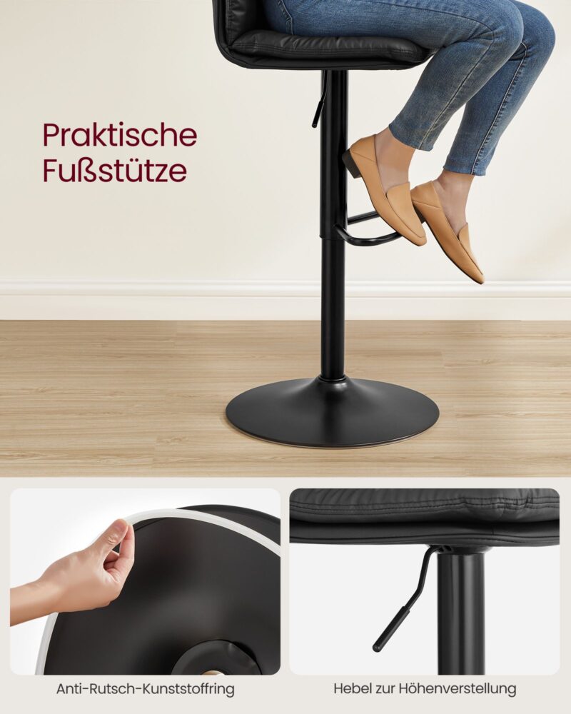 2 baro kėdės, reguliuojamo aukščio baro kėdės su EKO odos danga, 360° pasukamos, virtuvės kėdės su atlošu ir kojų atrama