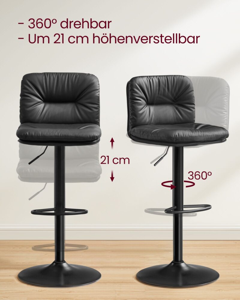 2 reguliuojamo aukščio baro kėdės 360° | Juoda | Komplektas