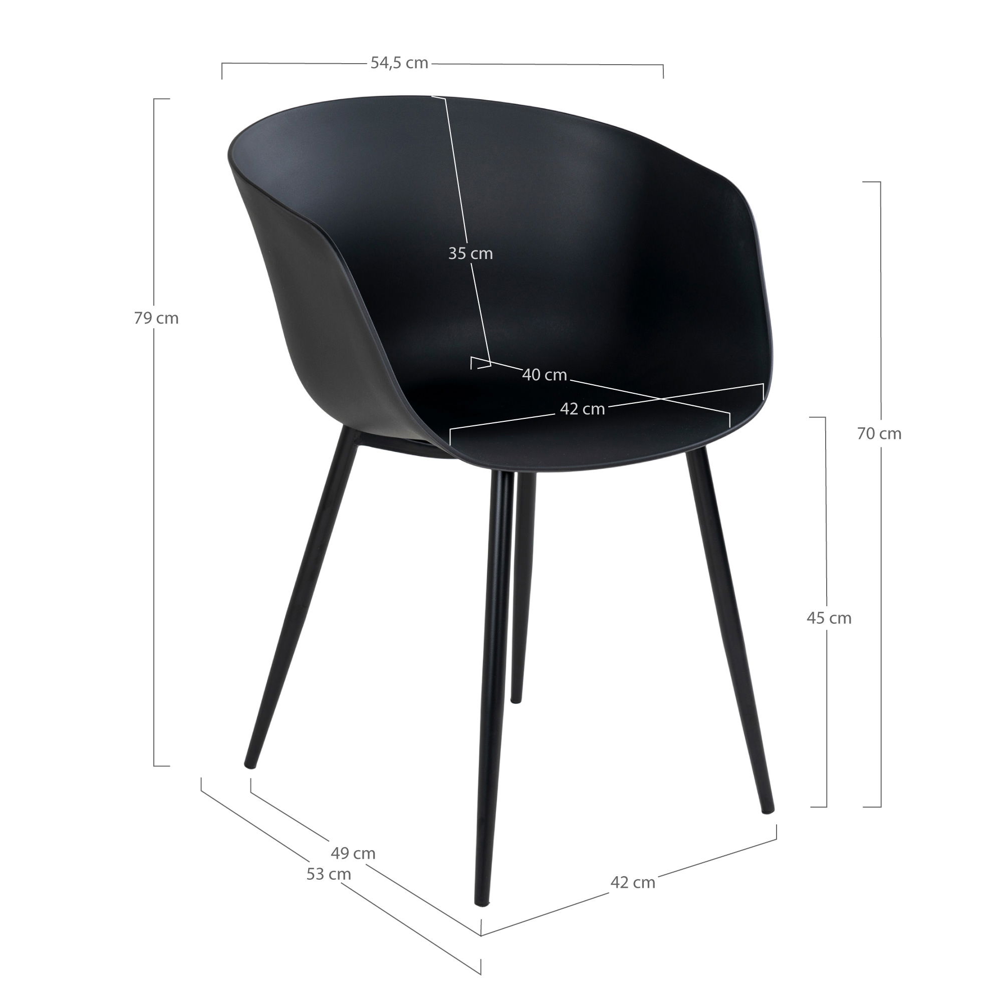 Valgomojo kėdė | 54,5 x 79 x 53 cm | Juoda | 2 vnt. kompl.