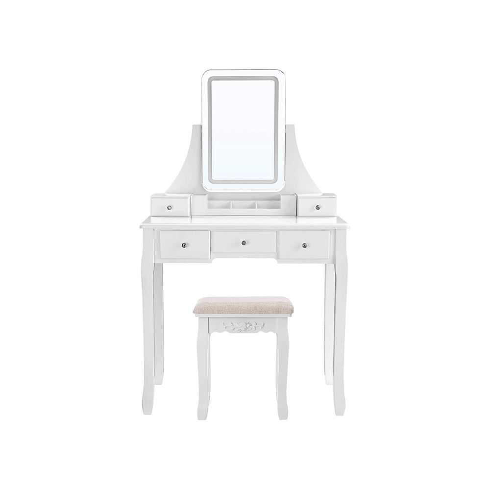 Klasikinis kosmetinis staliukas | LED apšvietimas | Kėdutė | Balta
