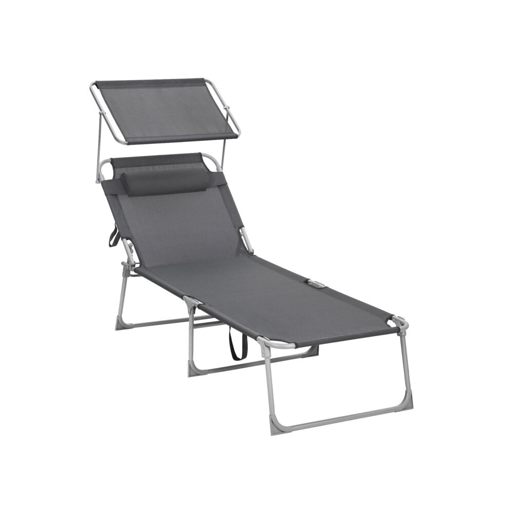 Parduotuvė / Gultai / Platus lauko gultas | Sulankstomas gultas | Stogelis nuo saulės | 150 kg | Pilka