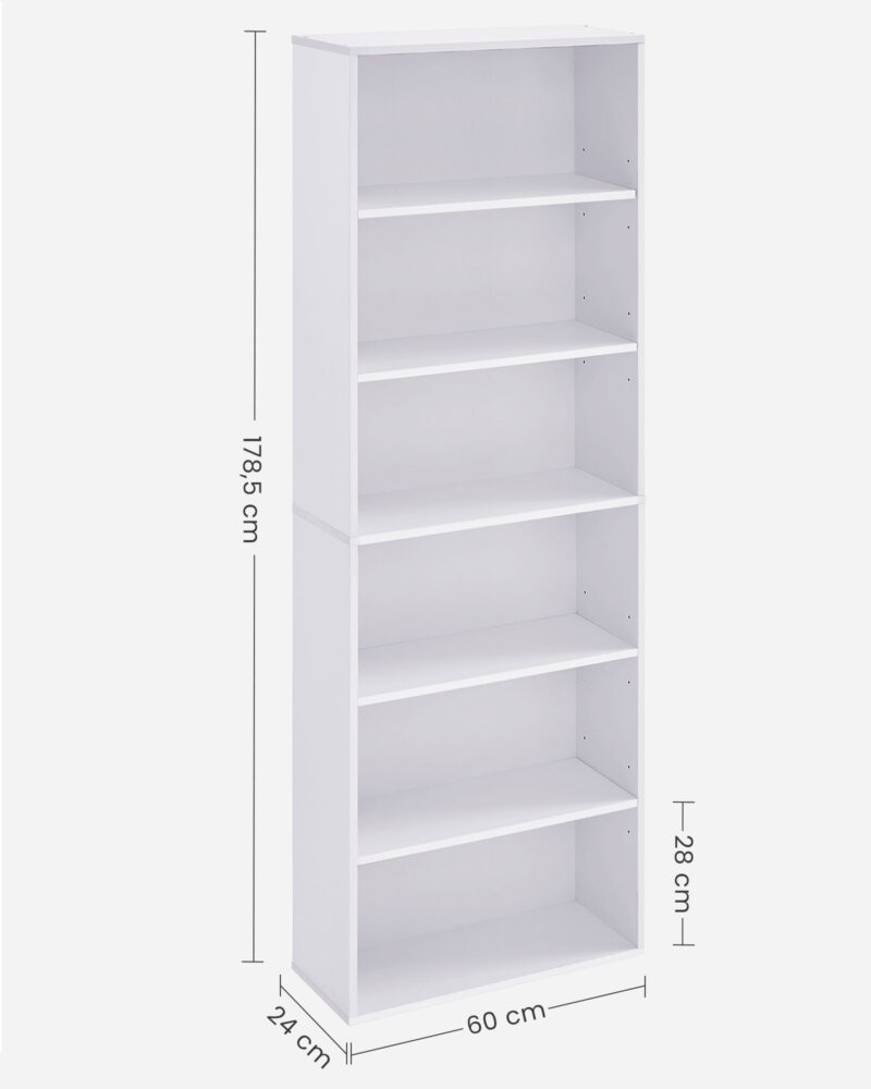 Pastatoma lentyna su 6 skyriais | 60 x 24 x 178 cm | Klasikinė balta