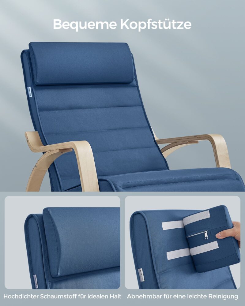 Supamasis krėslas, poilsio krėslas, 5 padėčių reguliuojama atrama kojoms, rėmas pagamintas iš tvirto beržo medžio, keliamoji galia iki 150 kg